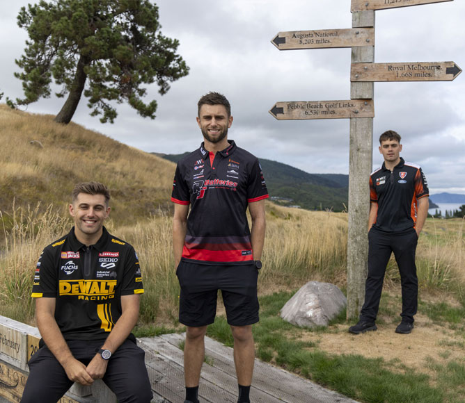 Three of the V8 Supercars’ biggest stars—Anton De Pasquale, rising rookie Ryan “Woody” Wood, and local hero Andre Heimgartner—recently swapped horsepower for golf carts at Taupo’s world-class Kinloch Club.